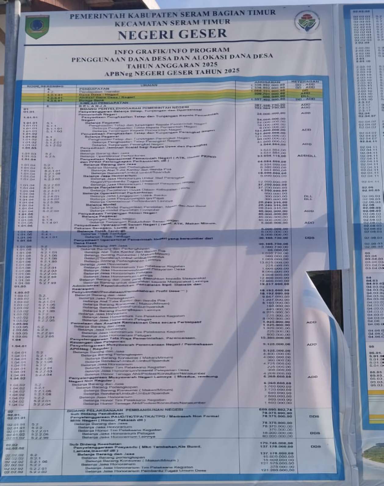 Dalam dokumen tersebut, terdapat beberapa program dengan nilai anggaran yang cukup besar. Di antaranya pembentukan awal Badan Usaha Milik Negeri (BUMNeg) sebesar Rp 201.238.200, pengembangan pariwisata Rp 128.023.000, pengelolaan dan perbaikan bak sampah Rp 47.800.000, serta pembangunan dan rehabilitasi sumber air bersih milik desa senilai Rp 16.312.132.
