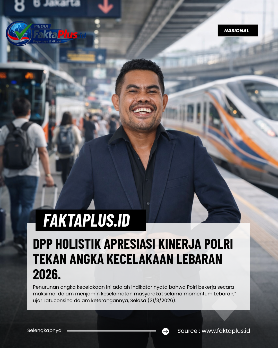 Jakarta —FAKTAPLUS.ID, Dewan Pimpinan Pusat (DPP) Holistik menyampaikan apresiasi terhadap kinerja Polri dalam menekan angka kecelakaan lalu lintas selama periode mudik dan arus balik Lebaran 2026.