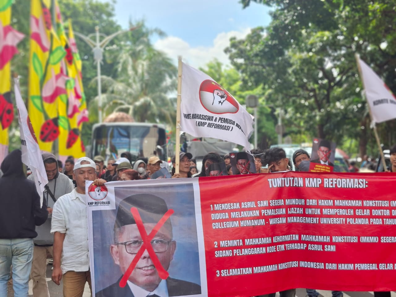 “Isu ini menyangkut kredibilitas lembaga serta integritas hakim konstitusi. Oleh sebab itu, verifikasi independen menjadi langkah penting untuk memastikan bahwa proses akademik ditempuh secara sah sesuai ketentuan,” ujar Koordinator Aksi, Alkahfi, dalam keterangan di lokasi.