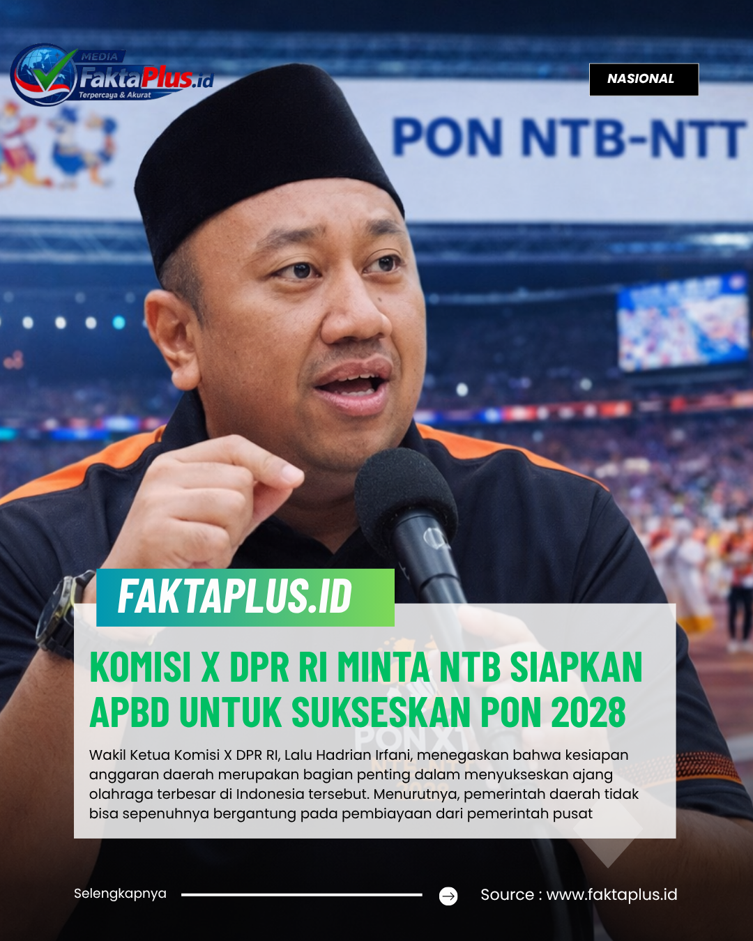 Jakarta – FAKTAPLUS.ID, Komisi X DPR RI meminta Pemerintah Provinsi Nusa Tenggara Barat (NTB) segera menyiapkan alokasi anggaran melalui APBD guna mendukung penyelenggaraan Pekan Olahraga Nasional (PON) 2028 yang akan digelar bersama Nusa Tenggara Timur (NTT).